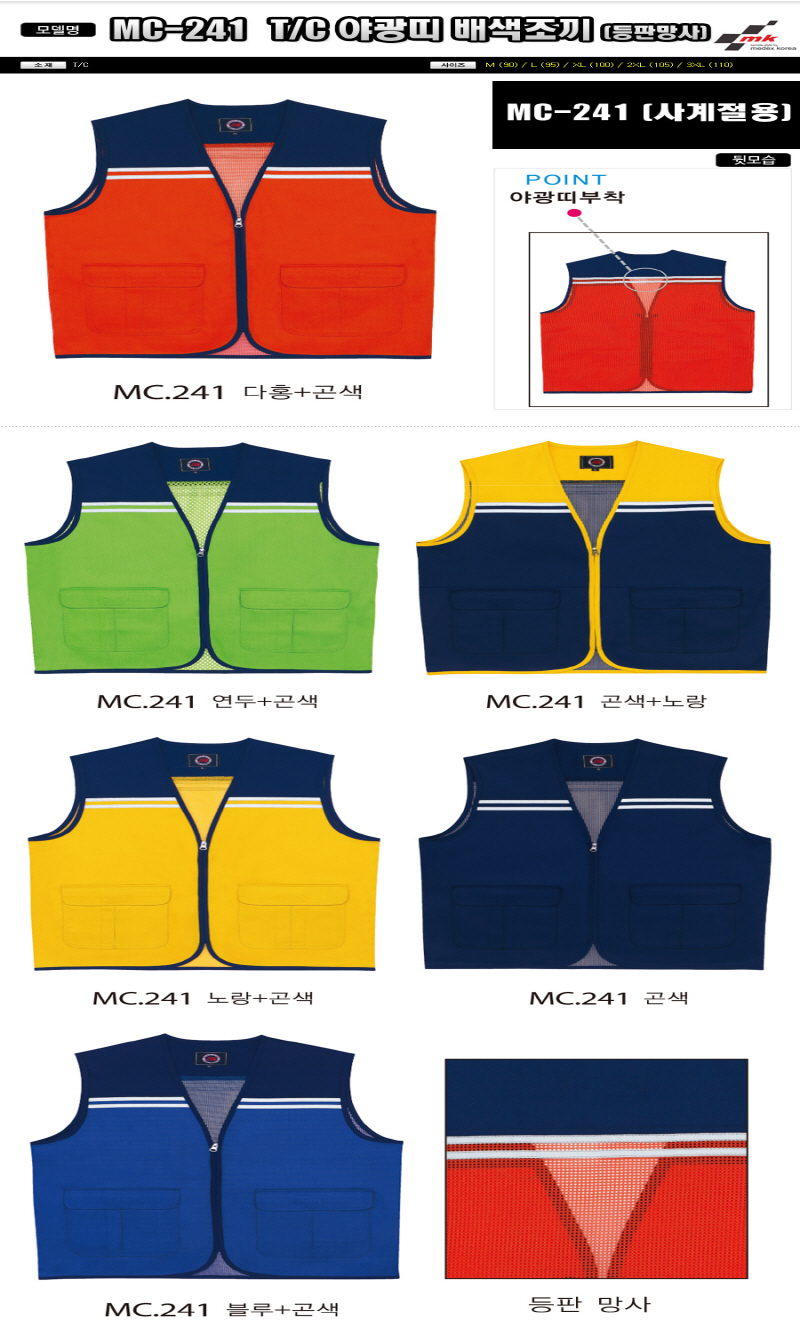 T/C 야광띠 배색 조끼..등판망사