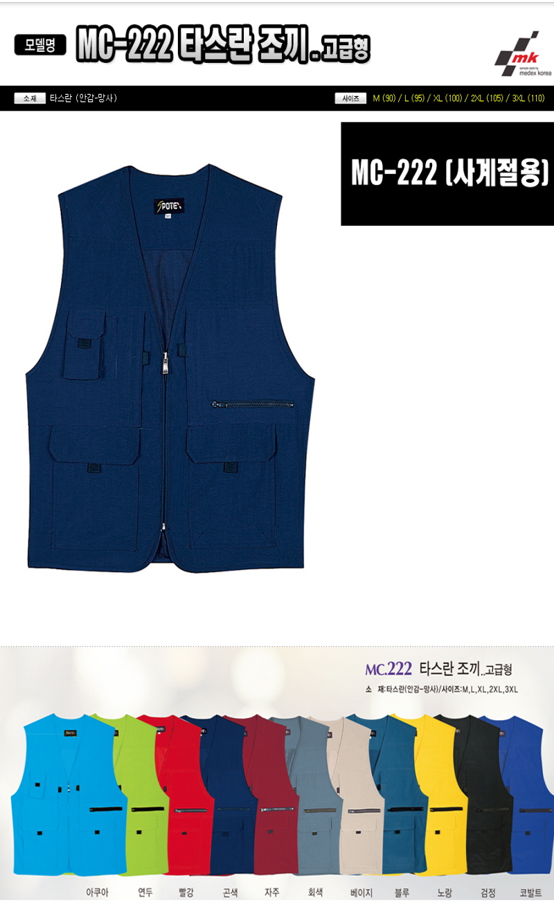 •Size : M, L, XL, 2XL, 3XL •소재 : 타스란 (안감-망사) ※단가변동 있을 수 있습니다. 제품 색상은 인쇄된 것이므로 실제 제품과 다소 차이가 있을 수 있습니다. MC-222