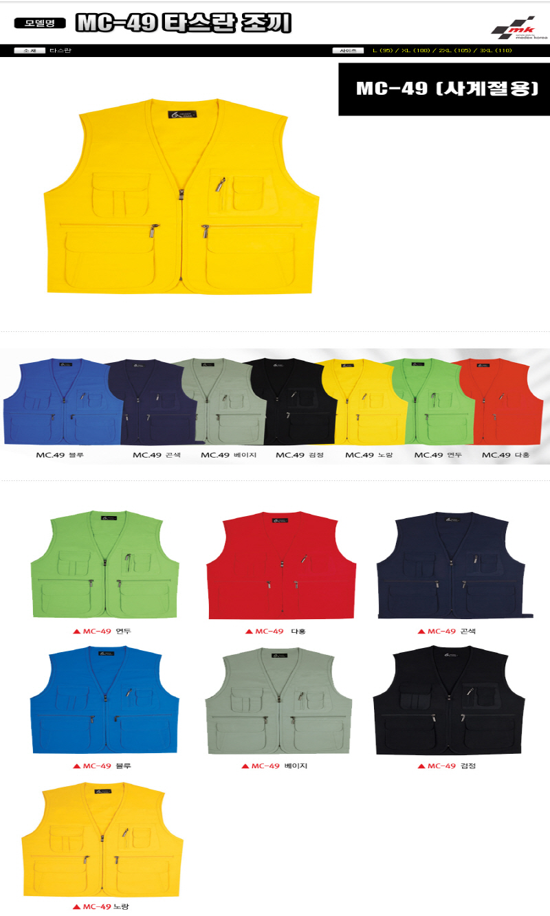 MC-49 •Size : L, XL, 2XL, 3XL •소재 : 타스란 ※단가변동 있을 수 있습니다. 제품 색상은 인쇄된 것이므로 실제 제품과 다소 차이가 있을 수 있습니다.
