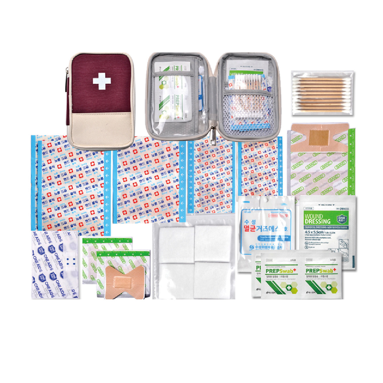 표준밴드8p/대형밴드2p/사각밴드2p/미니밴드4p/손끝밴드2p/관절밴드2p/ 방수밴드2p/알콜솜4p/드레싱밴드/멸균거즈2p/10p면봉/절솜4P/구급케이스 ※밴드이미지는 변경될수있음 / 종이케이스 포함
