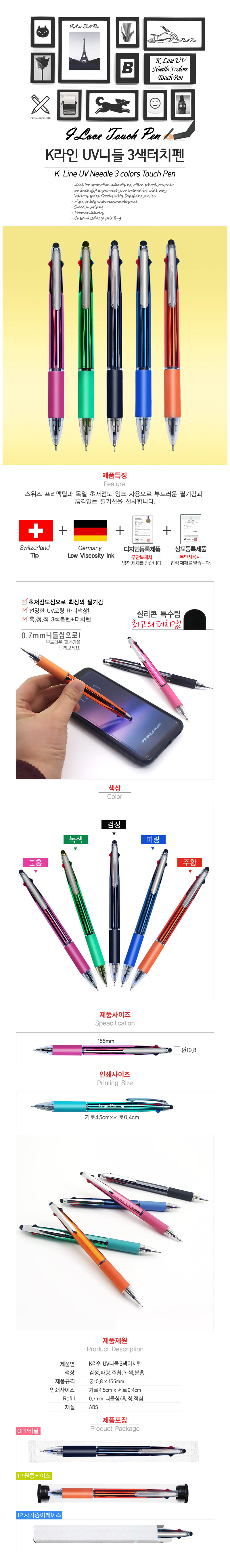 k라인 UV니들 3색 터치펜