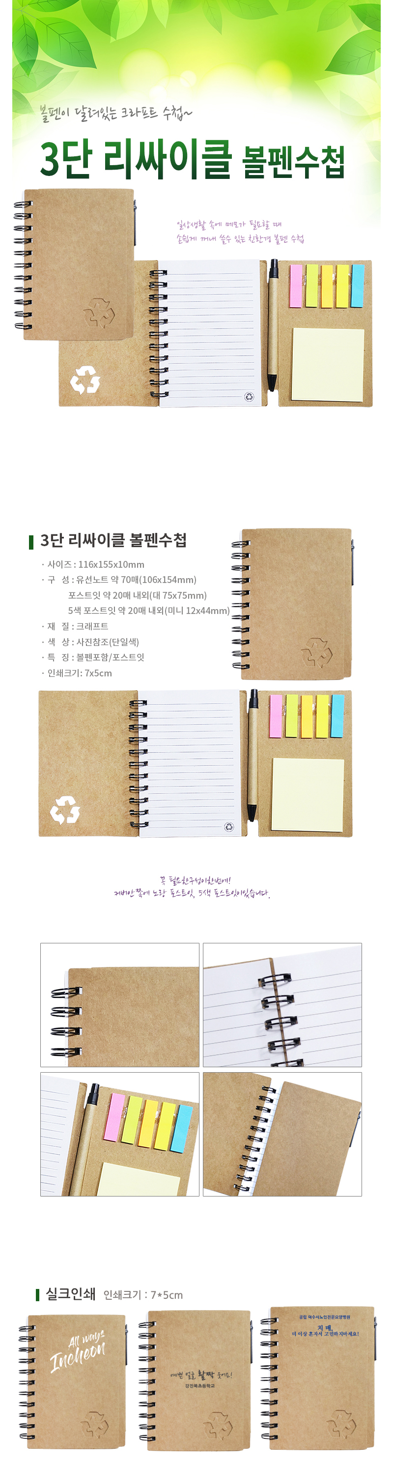 3단 리싸이클 볼펜수첩