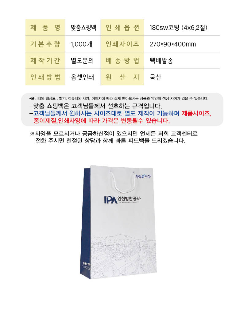 •180sw 코팅 •기본수량 1,000개 •Size : 270x90x400 mm