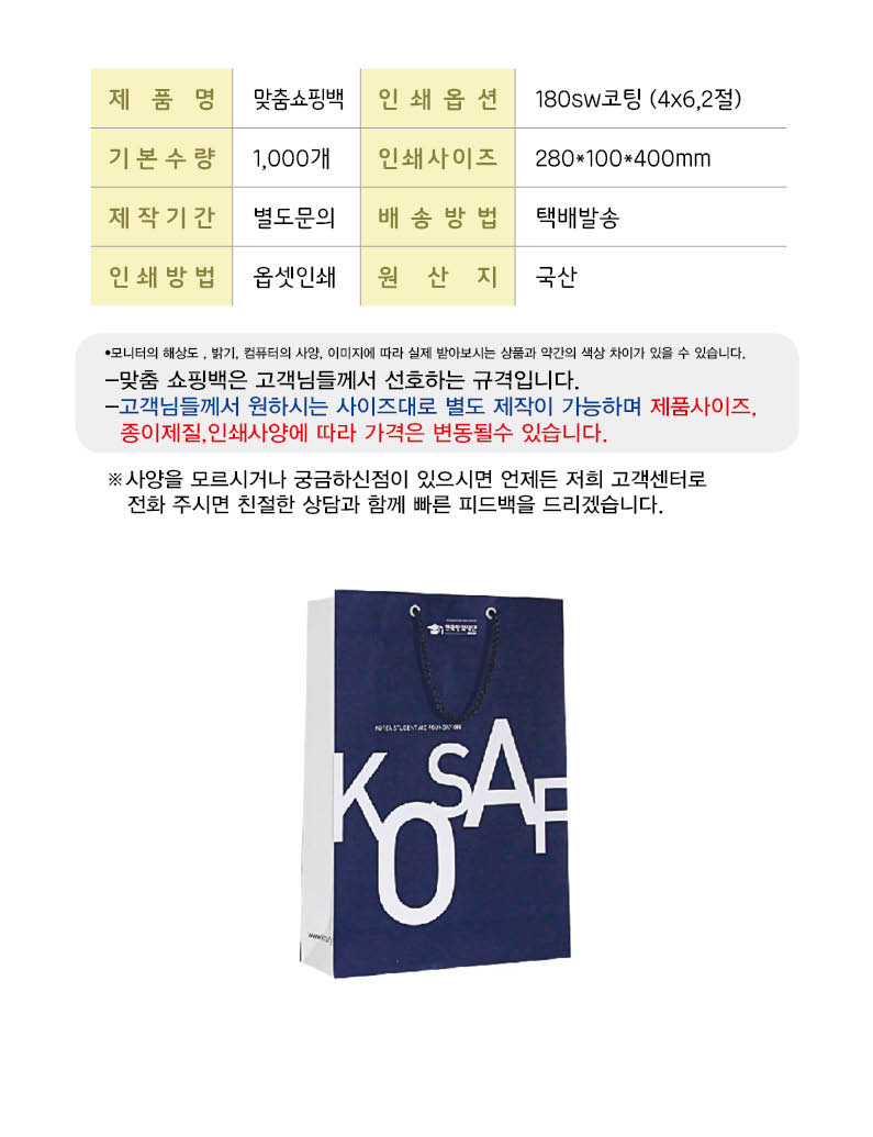 •180sw 코팅 •기본수량 1,000개 •Size : 280x100x400 mm