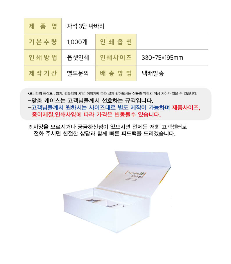 •기본수량 1,000개 •Size : 300x75x195mm